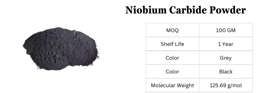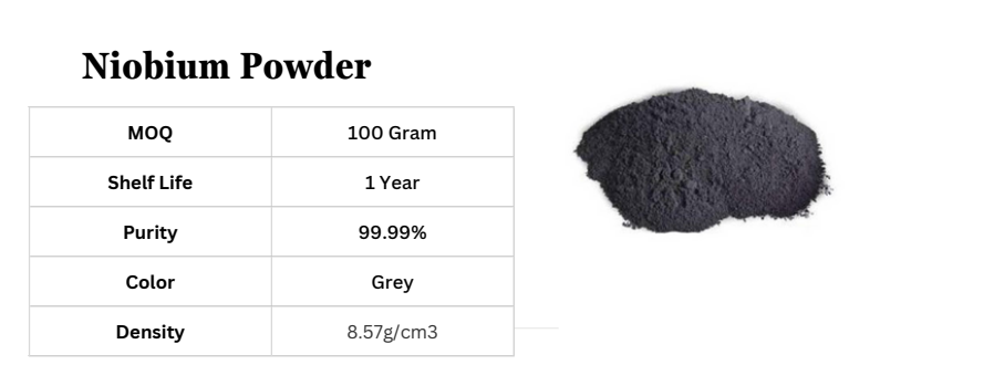 Features : ANSI GRADE - A refractory metal powder known for high-temperature strength and superconductivity. It forms a stable protective oxide layer at room temperature.