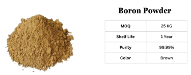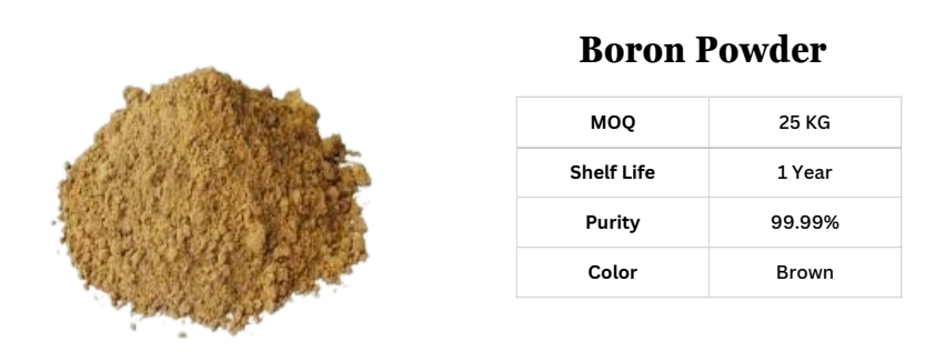 Features : Dark gray amorphous powder, boiling point 3000 oC, melting point 1668 oC ± 2 oC, insoluble in water and organic solvents at room temperature